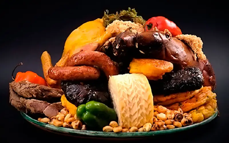 Una parte esencial de la fiesta es el Chiriuchu, un plato frío compuesto por ingredientes provenientes de costa, sierra y selva: cuy al horno, gallina, charqui, qochayuyo, torrejas y más —en total más de 10 ingredientes representativos de toda la gastronomía peruana.