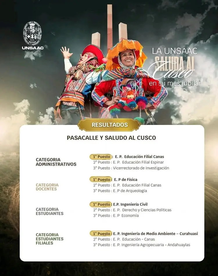 El pasado 18 de junio de 2025, la Universidad Nacional de San Antonio Abad del Cusco (UNSAAC) llenó de color, ritmo y tradición la histórica Plaza de Armas de Cusco con su tradicional Desfile de Comparsas. En la edición de este año, las delegaciones de las escuelas profesionales se lucieron con representaciones basadas en danzas regionales, vestuarios típicos y música en vivo, emocionando a estudiantes, docentes, autoridades y público en general